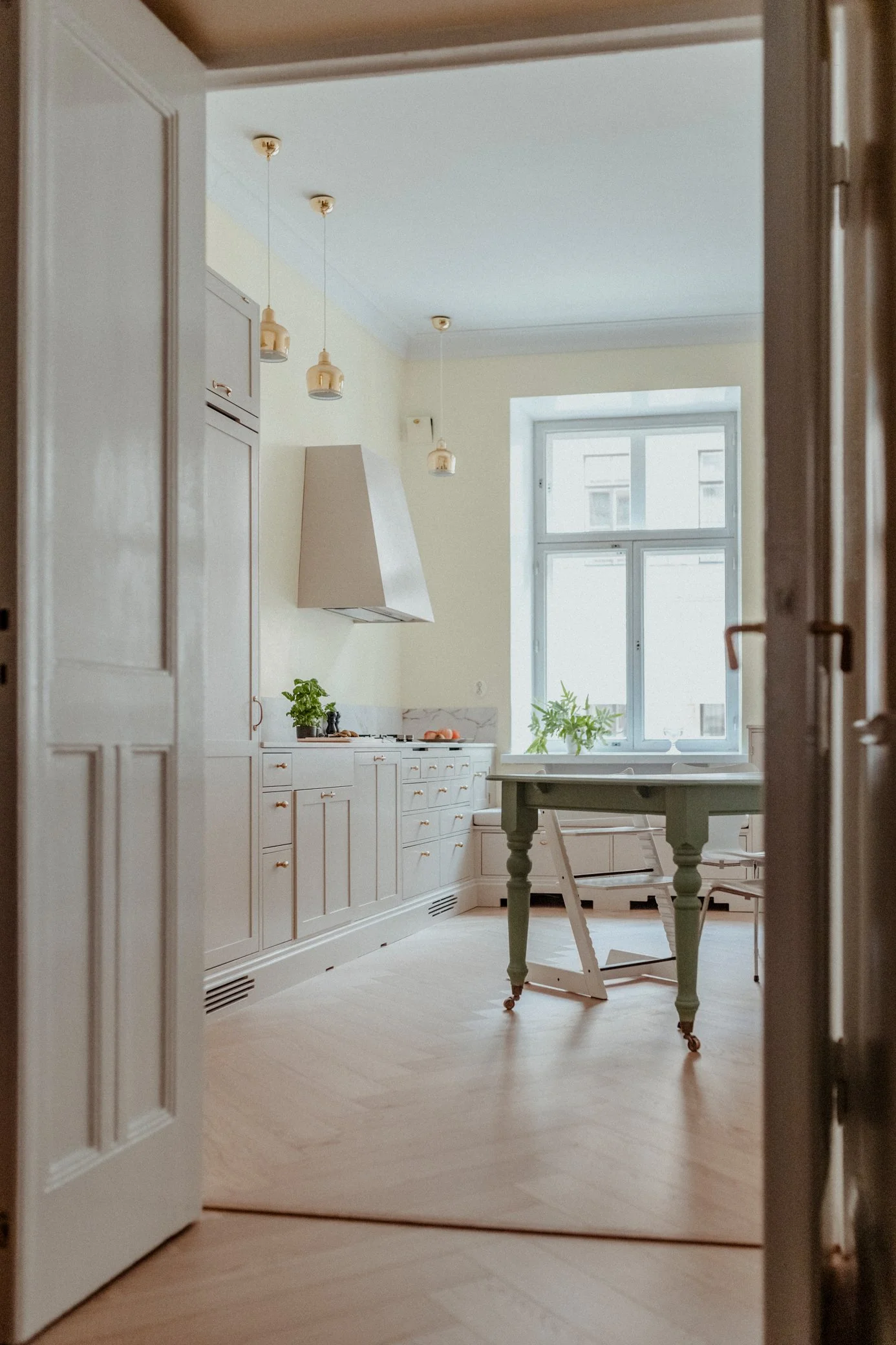 Tämä kaunis jugendtalossa sijaitseva koti on yhdistetty kahdesta erillisestä kaksiosta. Näin saatiin nelihenkiselle perheelle tarpeeksi tilaa ja lapsille omat huoneet.